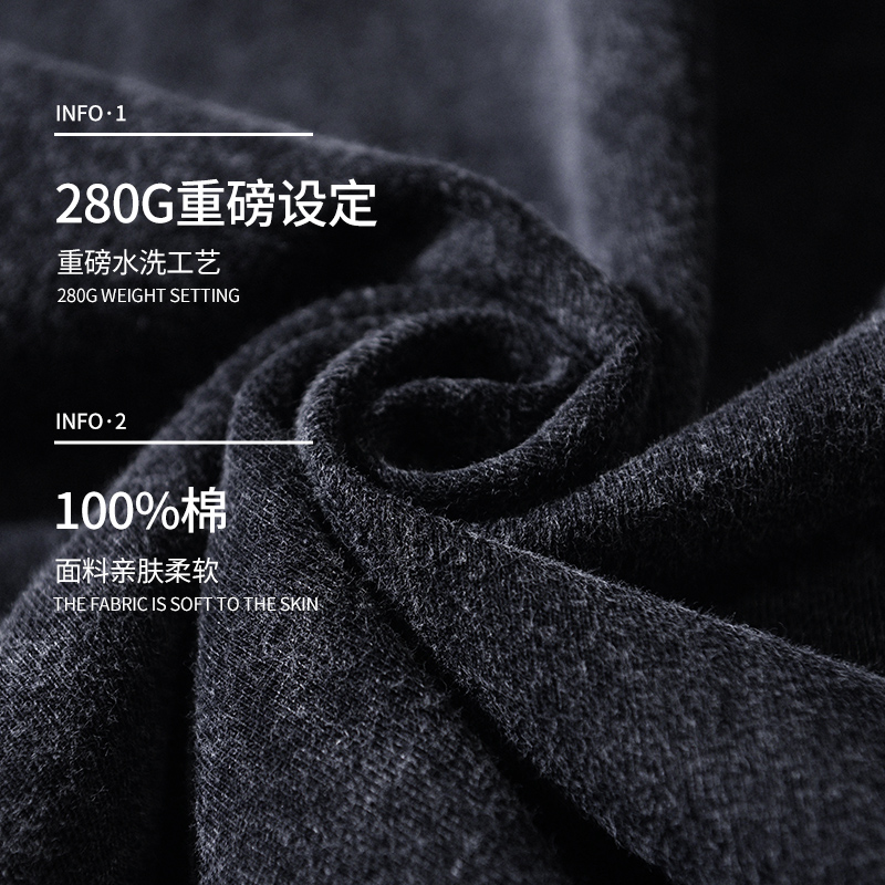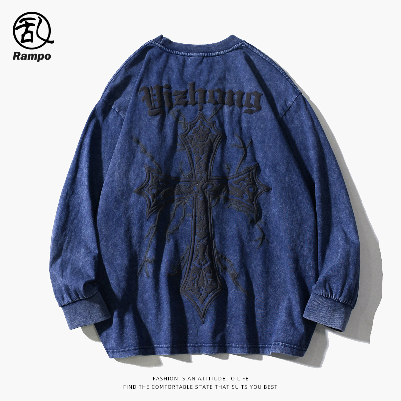 T恤 圆领发泡字母卫衣宽松流行长袖 美式 水洗做旧280g重磅纯棉男士