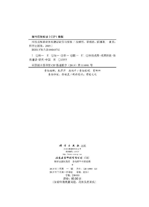科技成果转化体系建设研究与实践科学出版 社