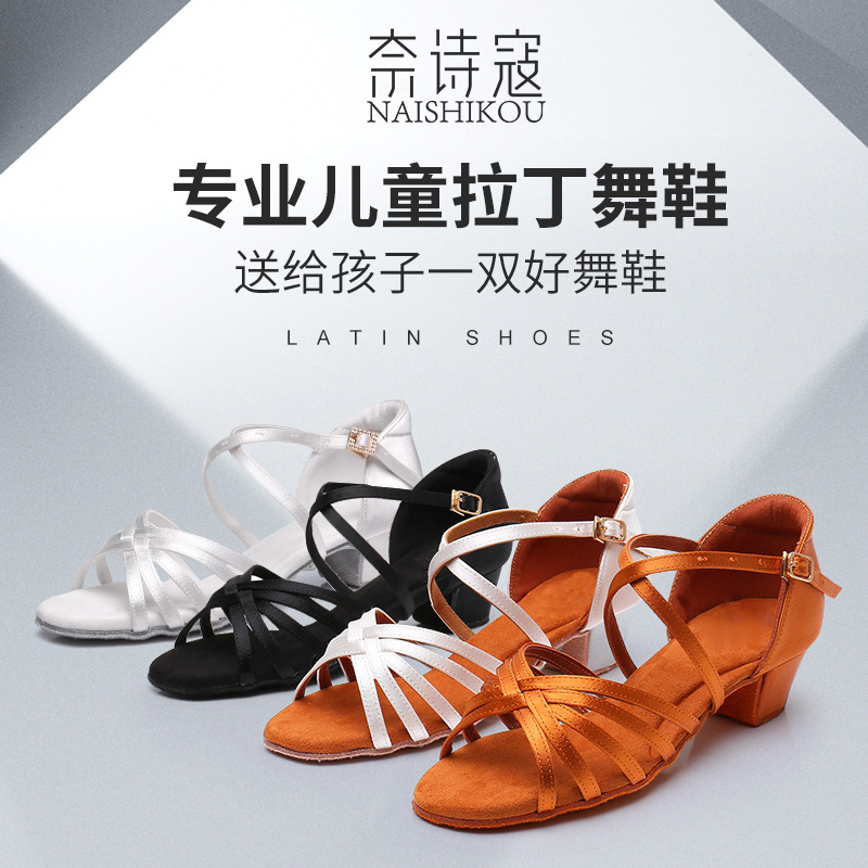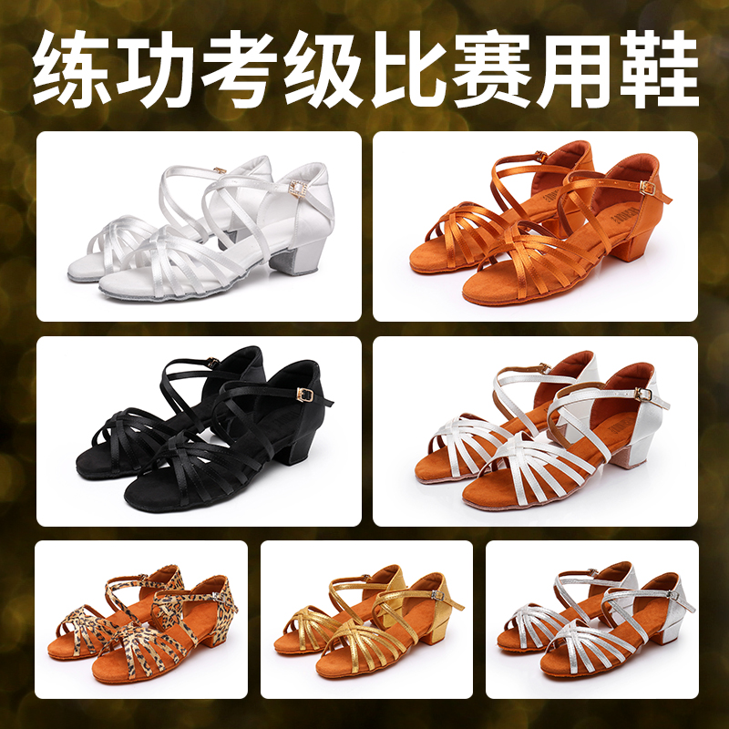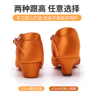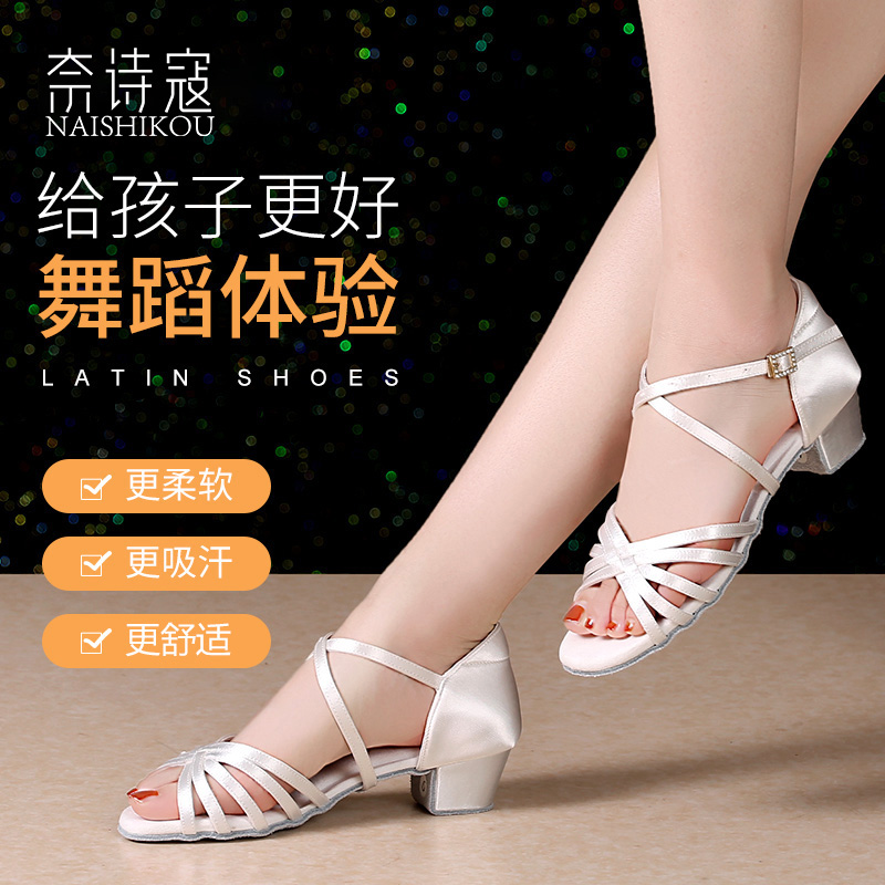 舞蹈鞋 少儿跳舞鞋 儿童女童考级初学者软底中跟舞蹈鞋 白色拉丁舞鞋