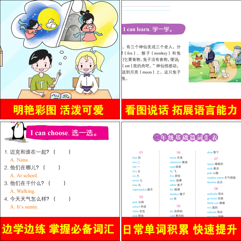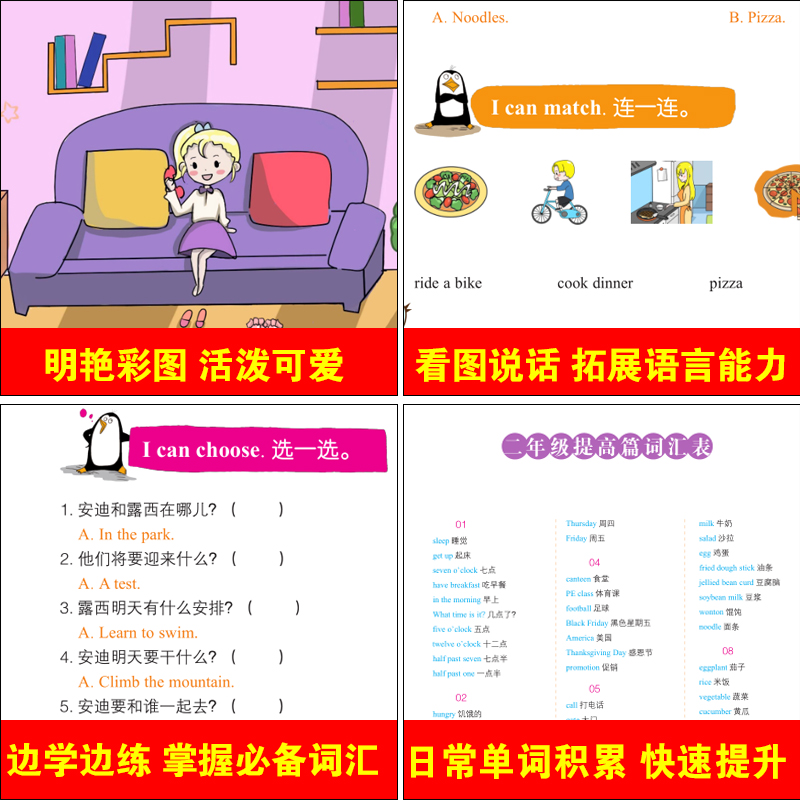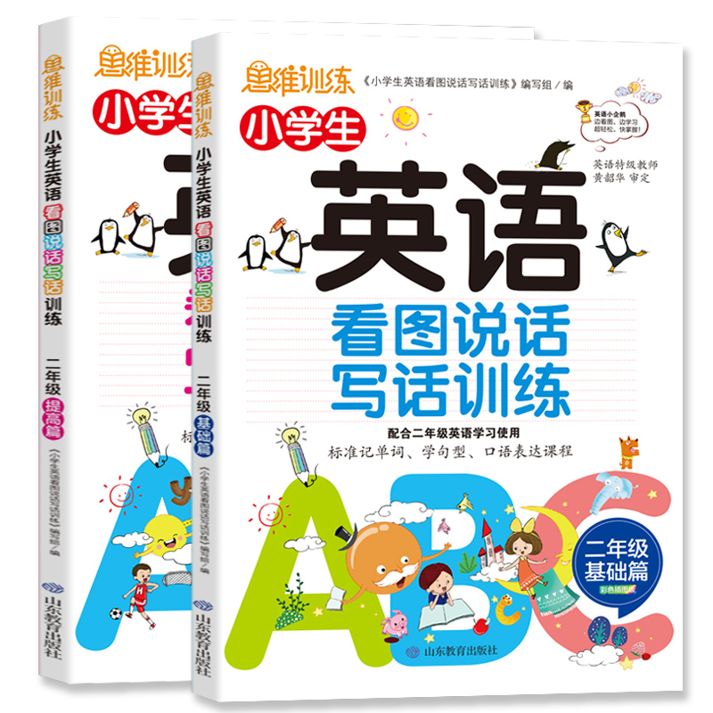 基础篇 单词大全小学2年级专项思维范文大全入门正版 提高篇 二年级上册同步训练教材 全套两册 小学生英语看图说话写话训练二年级
