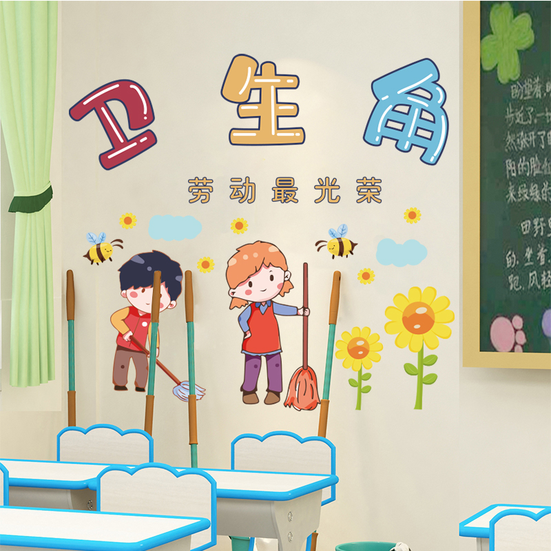 卫生角图书角布置墙贴画小学幼儿园班级公约教室文化建设墙面贴纸