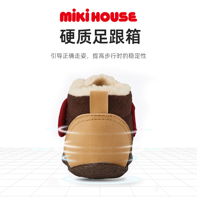 男女童学步冬鞋 MIKIHOUSE儿童棉鞋 日本制宝宝保暖刺绣加绒童鞋