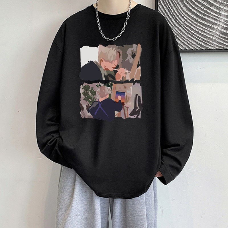 宽松百搭上衣ins潮牌情侣体恤打底衫 纯棉长袖 新款 2025秋季 t恤男士