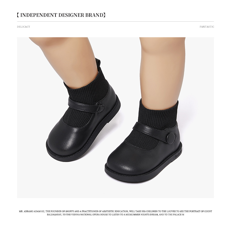 斯纳菲女童袜靴黑色春秋新款 儿童皮靴小女孩公主软底宝宝单靴短靴