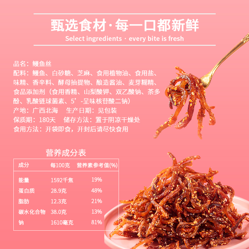 北海印象香辣蜜汁鳗鱼丝散装 海味辣味鱼干零食即食休闲食品
