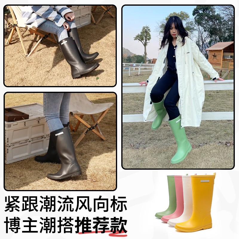 外穿花园防水鞋 雨鞋 新款 时尚 成人网红户外雨靴 女高筒防水防滑胶鞋