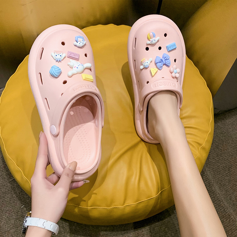 卡通可爱玉桂狗外穿洞洞鞋 踩屎感低跟透气湿水沙滩拖 女平底春夏款