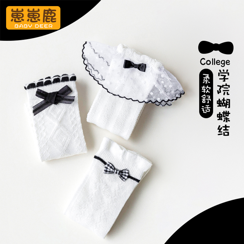 女童袜子夏季 网眼小腿袜儿童洛丽塔长筒袜纯棉公主花边长袜配裙子