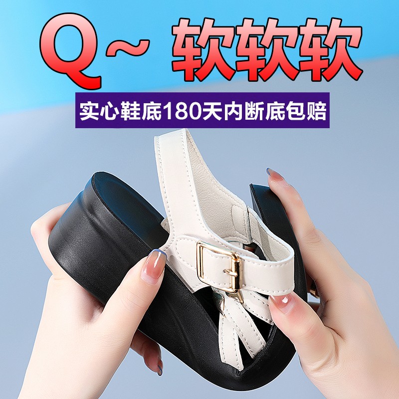 软底防滑女士上班休闲罗马鞋 坡跟凉鞋 时尚 2023年新款 子 女外穿夏季