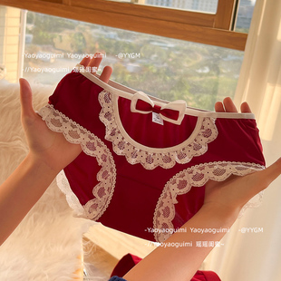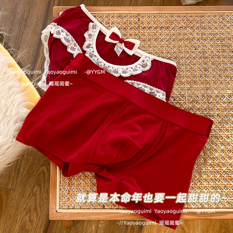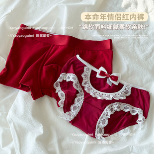 瑶瑶闺蜜情侣内裤 本命年bi入新年礼物男女红色蕾丝边洛丽塔三角裤