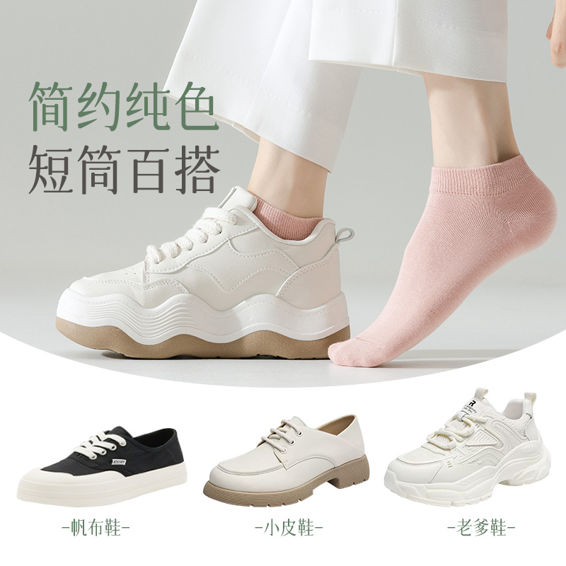 袜子女纯棉底不起球春夏季 船袜透气吸汗浅口短袜 白色运动防滑薄款