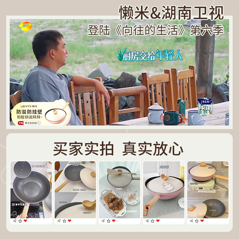 美 不粘锅炒锅家用锅炒菜锅平底锅麦饭石色电磁炉燃气灶专用炊具