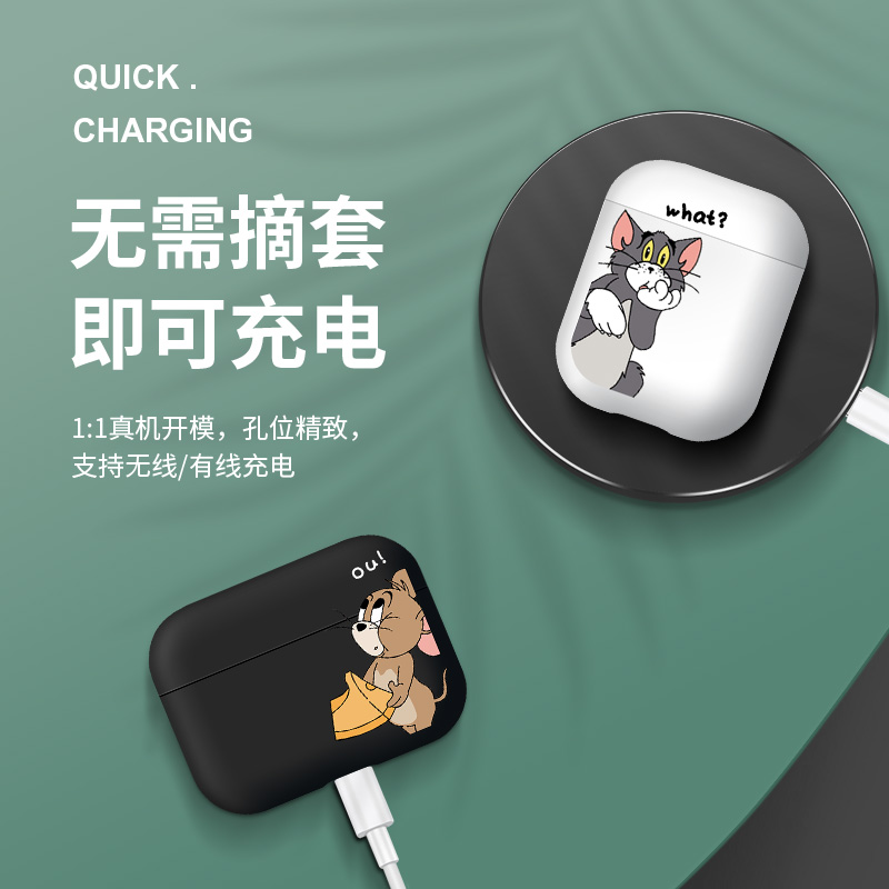 猫和老鼠airpodspro苹果无线蓝牙耳机套可爱情侣款 airpods3液态硅胶airpods2代杰瑞ipod2汤姆ipod3保护套防摔
