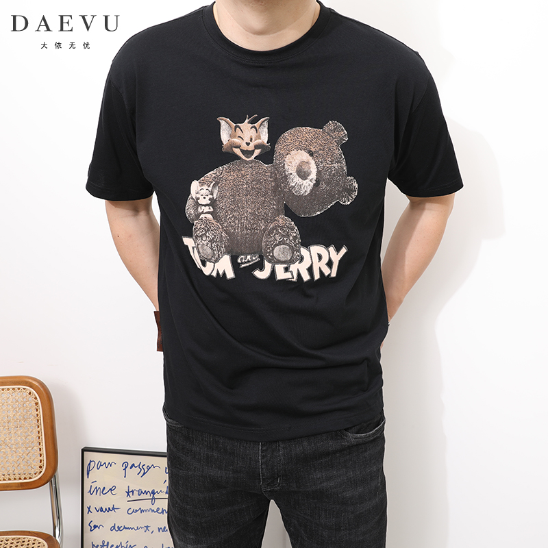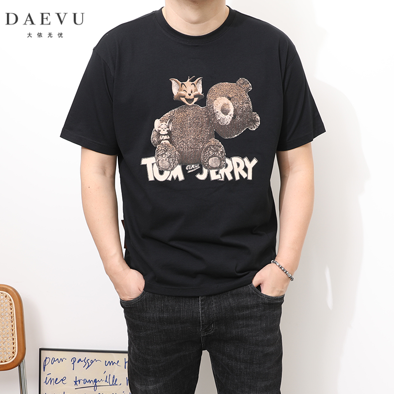 短袖 大依无忧夏季 圆领男士 卡通熊潮胖子大号加肥加大码 t恤 新款