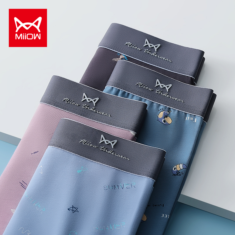 内裤 男生四角平角短裤 男款 青少年夏季 衩 冰丝无痕2025新款 猫人男士