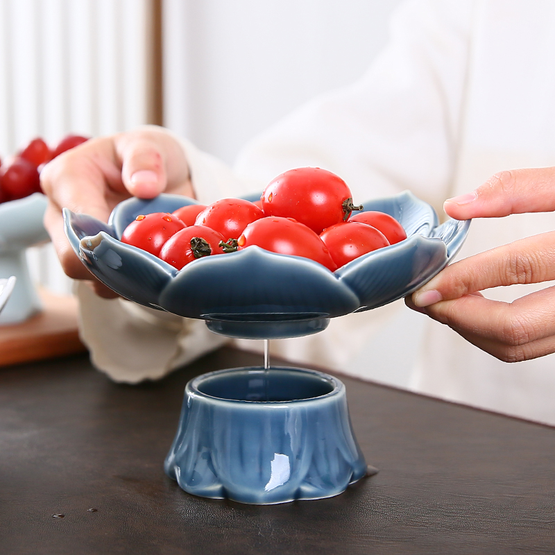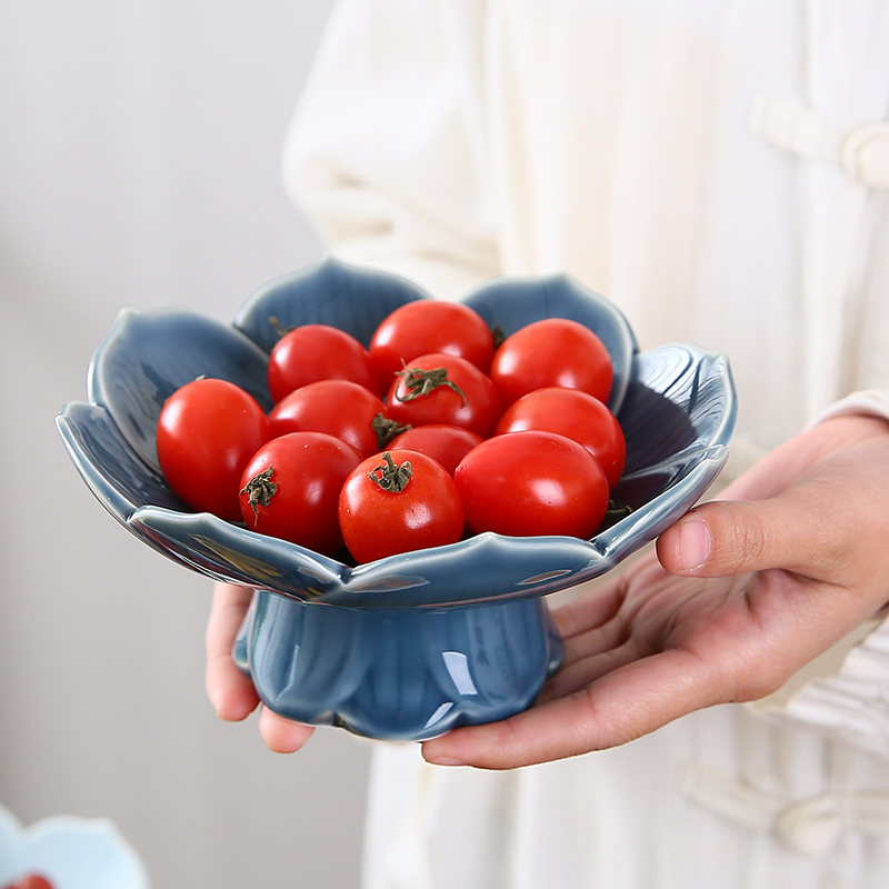 水果盘轻奢风陶瓷高脚茶点盘子现在客厅家用茶几糖果零食糕点心盘