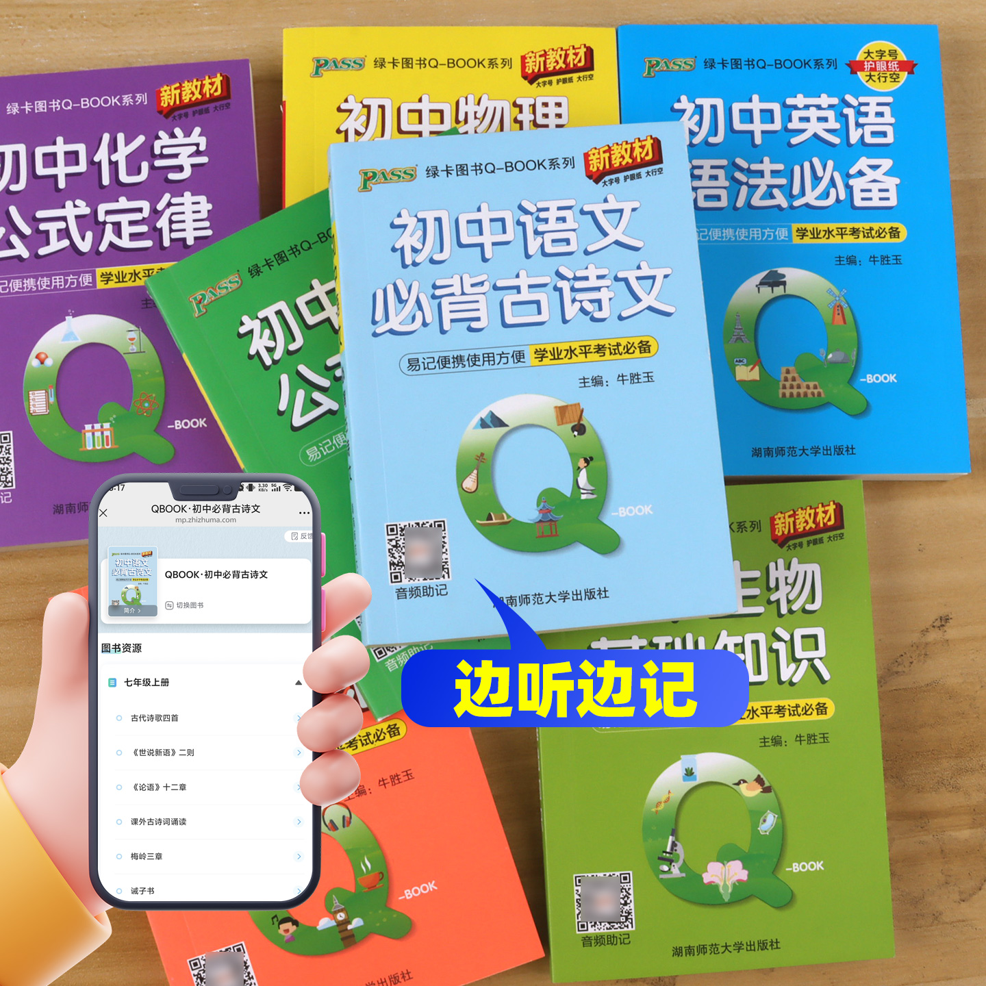 2026年绿卡Q 定律初中语文数学英语物理化学生物政治历史地理初一初二初三重难点知识总结便携口袋书qbook BOOK掌中宝基础知识公式