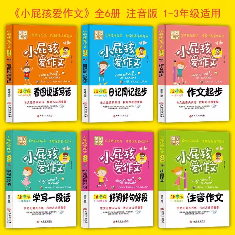 一二三年级小学生写作技巧与方法五感法漫画有高招写给孩子 注音版 漫画作文书满分作文素材大全 全6册 黄冈作文:小屁孩爱作文