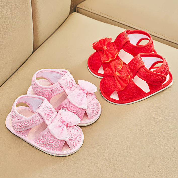 不掉牛筋底学步鞋 蕾丝蝴蝶结公主软底婴儿鞋 子 女宝宝护脚凉鞋 夏季