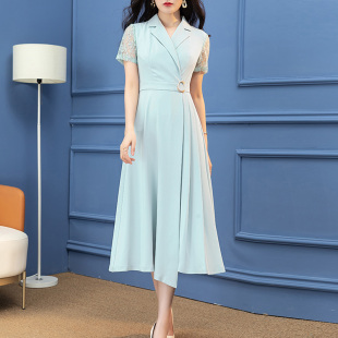 连衣裙女2025新款 中长款 时尚 显瘦短袖 a字裙 简约洋气气质修身 夏季