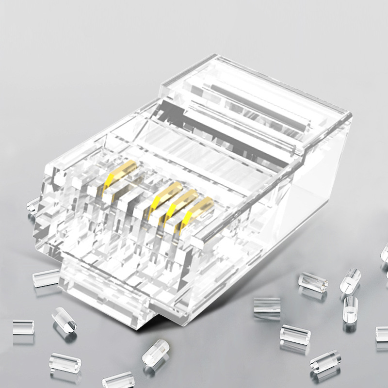 监控网线水晶头镀金8P4C超五类网络四芯监控双绞线连接头8芯100颗