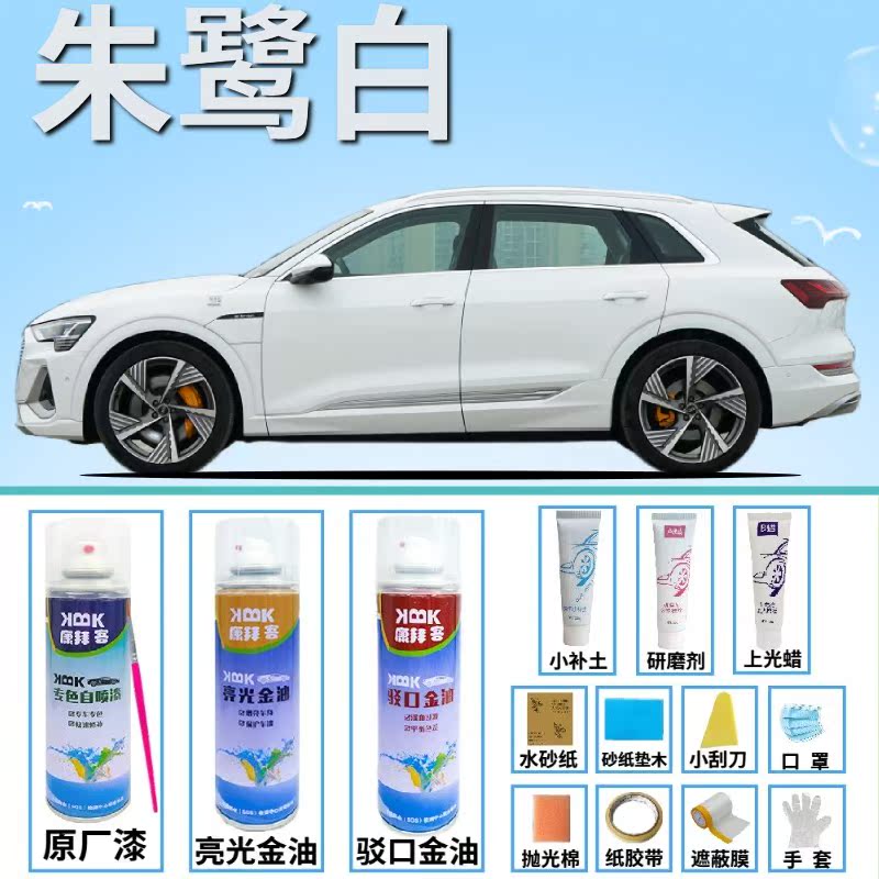 奥迪etron补漆笔朱鹭白汽车划痕修复自喷漆白色手喷漆原厂乳白色