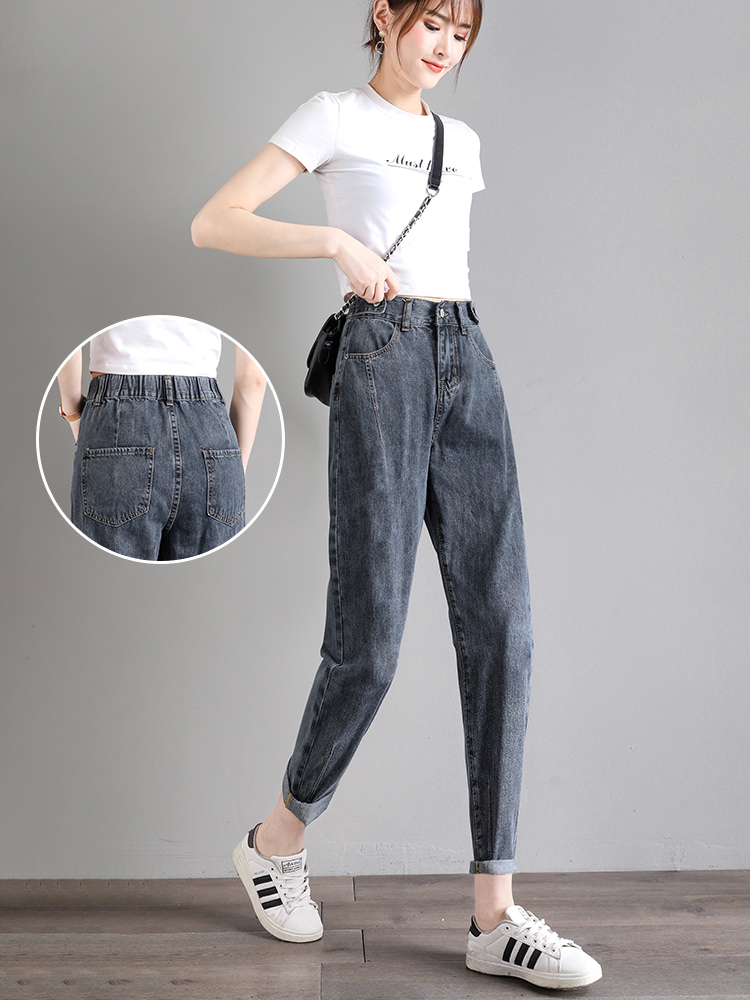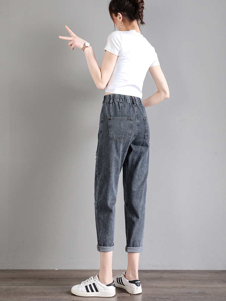 胖mm高腰显瘦松紧腰哈伦裤 破洞老爹牛仔裤 大码 薄款 女宽松2025夏季