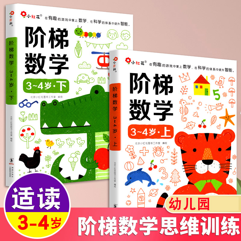 幼儿园智力贴纸数学潜能开发 6岁上下全2册儿童潜能开发益智早教游戏书 认数左右脑全脑开发思维训练书 邦臣小红花阶梯数学2