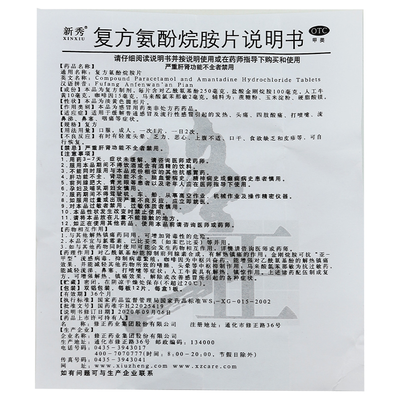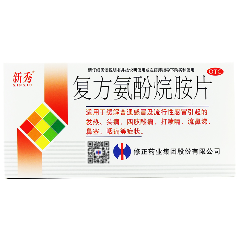 修正复方氨酚烷胺片12片发热发烧头痛感冒鼻塞打喷嚏流鼻涕嗓子疼