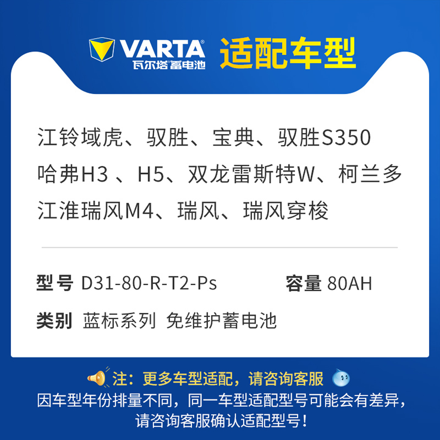 瓦尔塔汽车电瓶蓄电池95D31R 瑞风汽车电池 哈弗H3江铃驭胜纳智捷