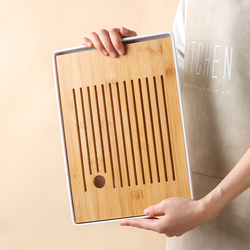 茶盘托盘长方形家用放茶杯干泡台日式 盘子内嵌泡茶办公室竹制排水