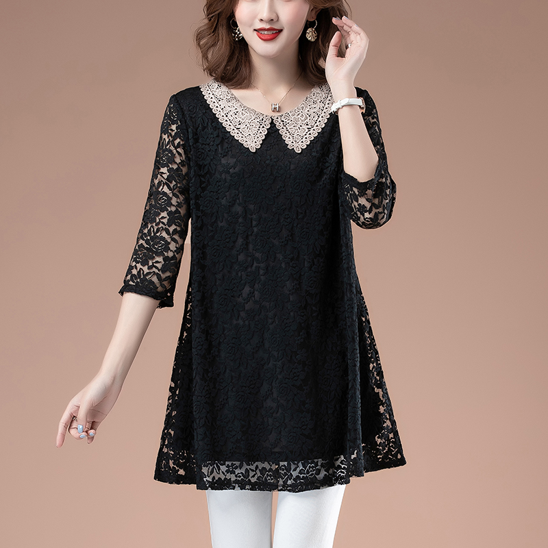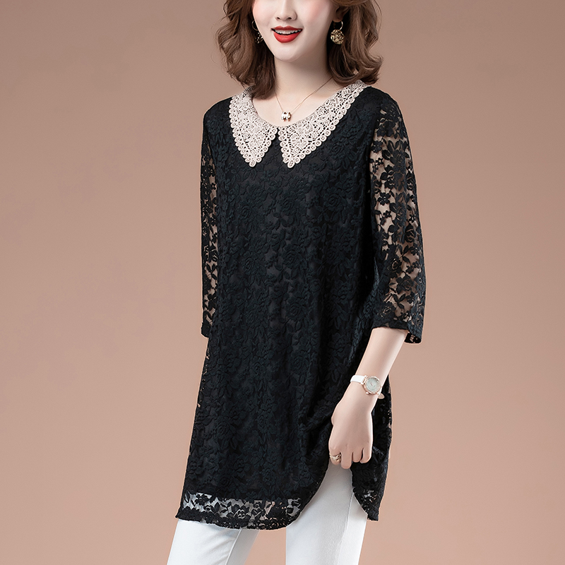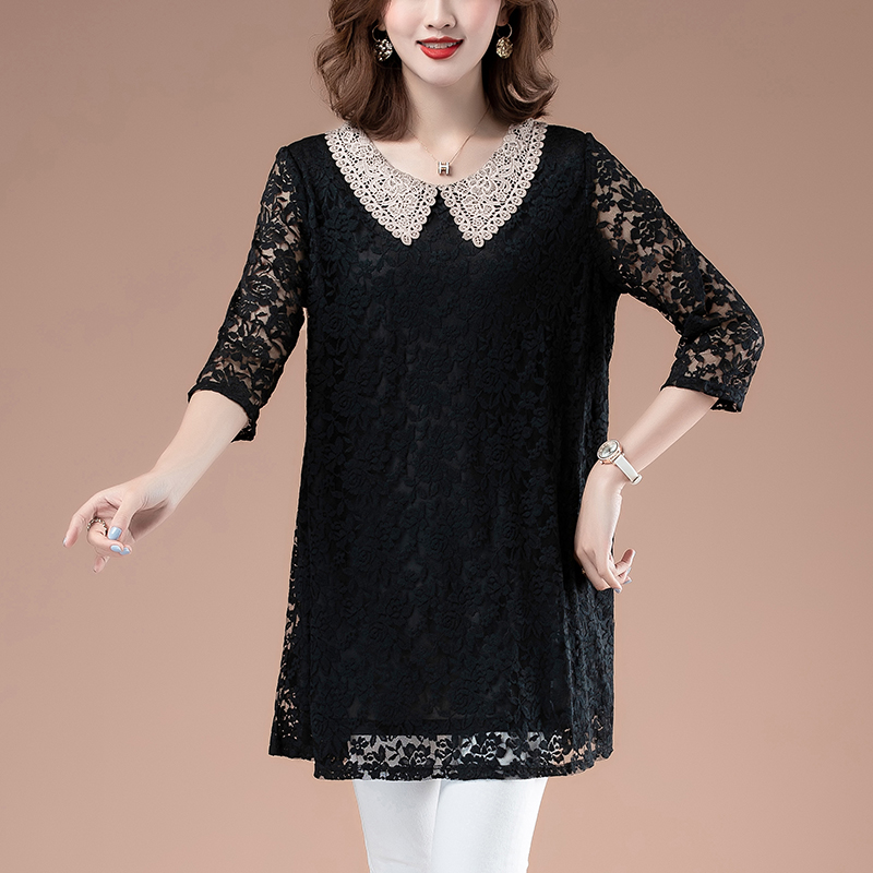 洋气上档次小衫 时尚 上衣女七分袖 中老年妈妈蕾丝t恤宽松休闲中袖