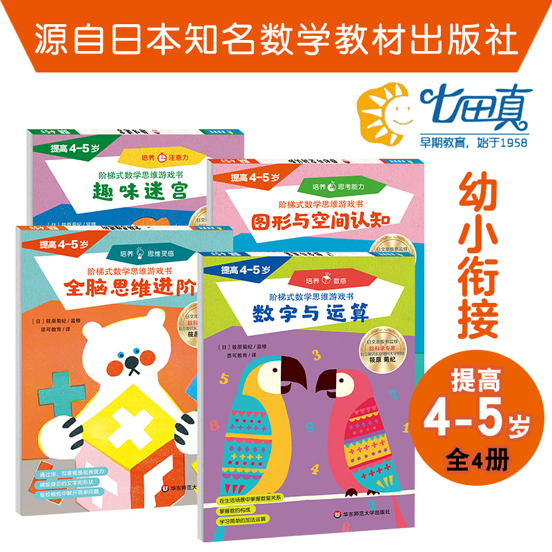 图形与空间认知 七田真阶梯式 4册 套装 趣味迷宫 全脑思维进阶 数字与运算 数学思维游戏书·提高 5岁