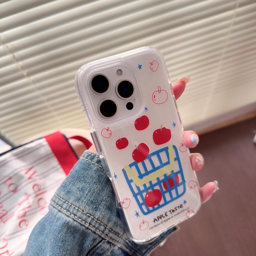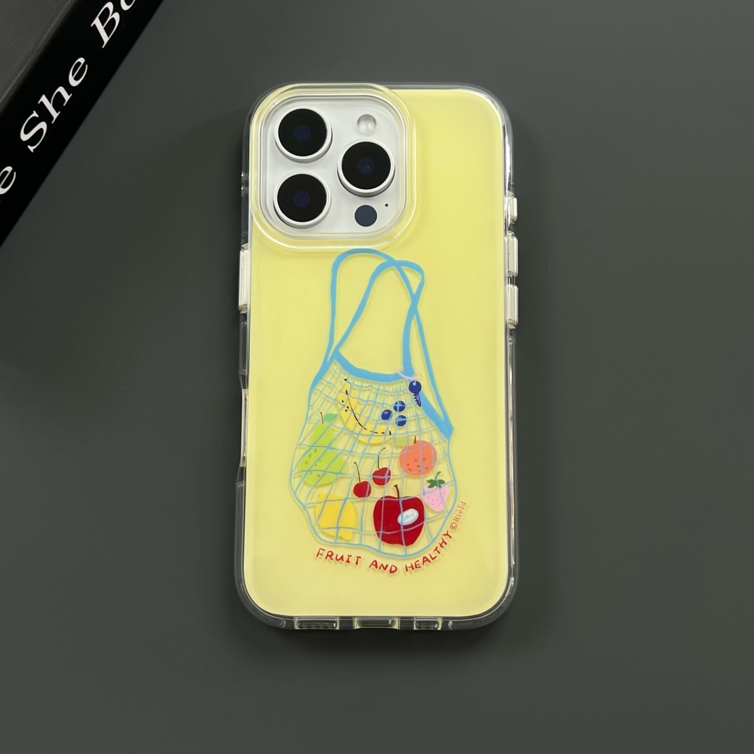 夏日清新水果插画适用苹果16promax手机壳新款 13简约防摔12promax带挂绳 iphone15pro亮面imd圆边可爱创意14