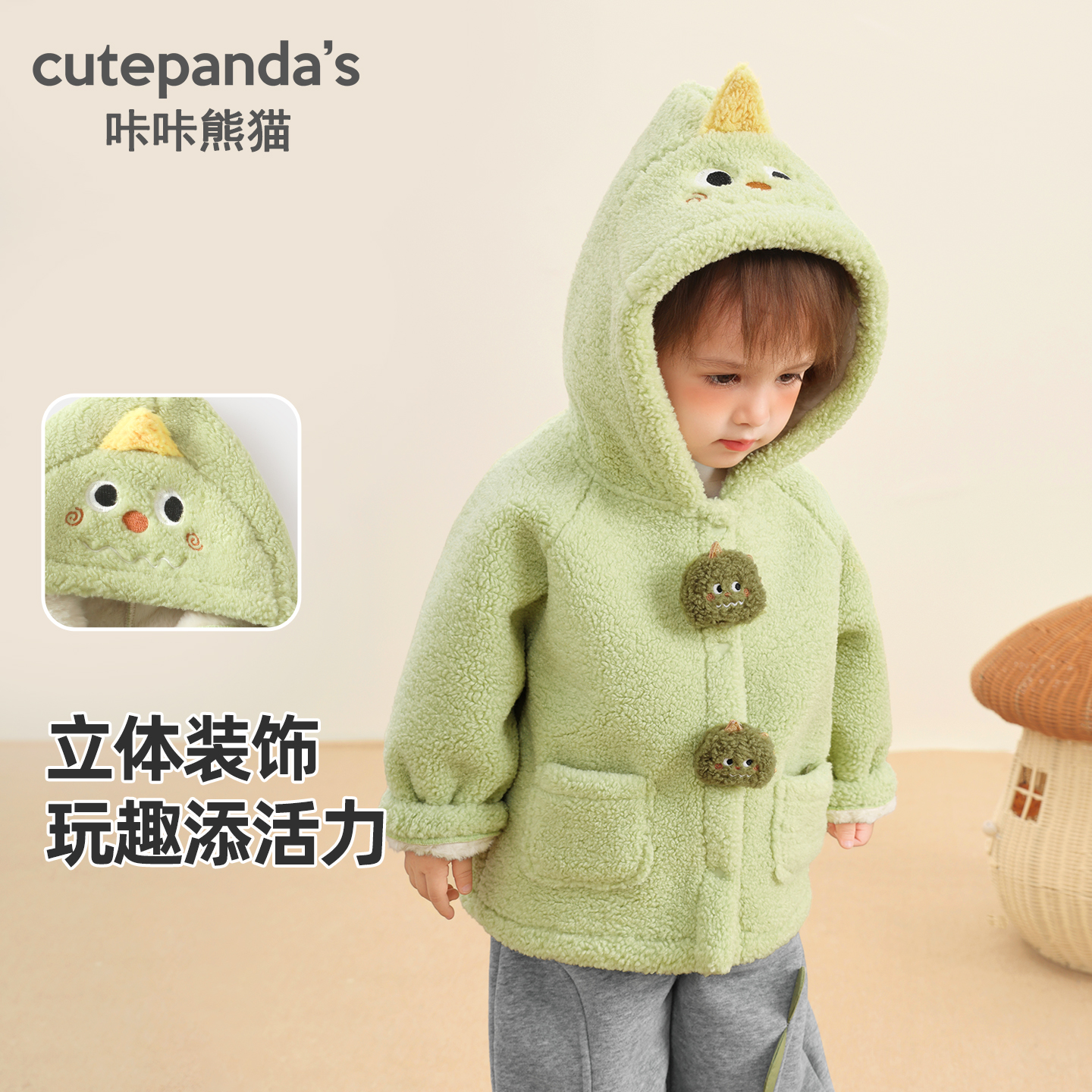 儿童宝宝绒男女保暖上衣加绒开衫 拉链恐龙造型外套潮普通外套V字