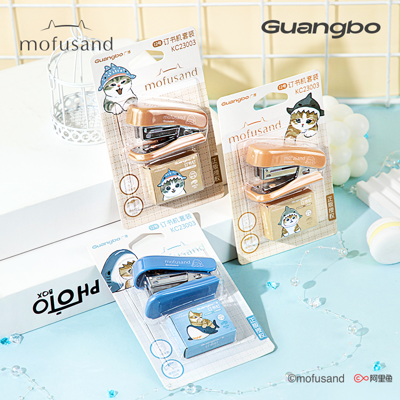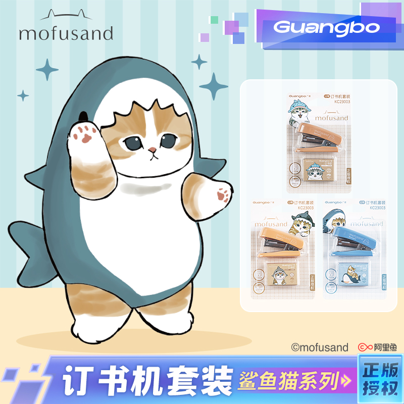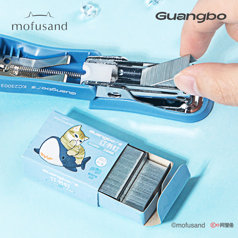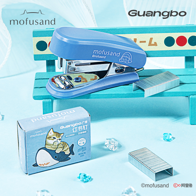 订器12号mofusand正版 广博鲨鱼猫小订书机针套装 迷你小号学生订书机猫福珊迪装