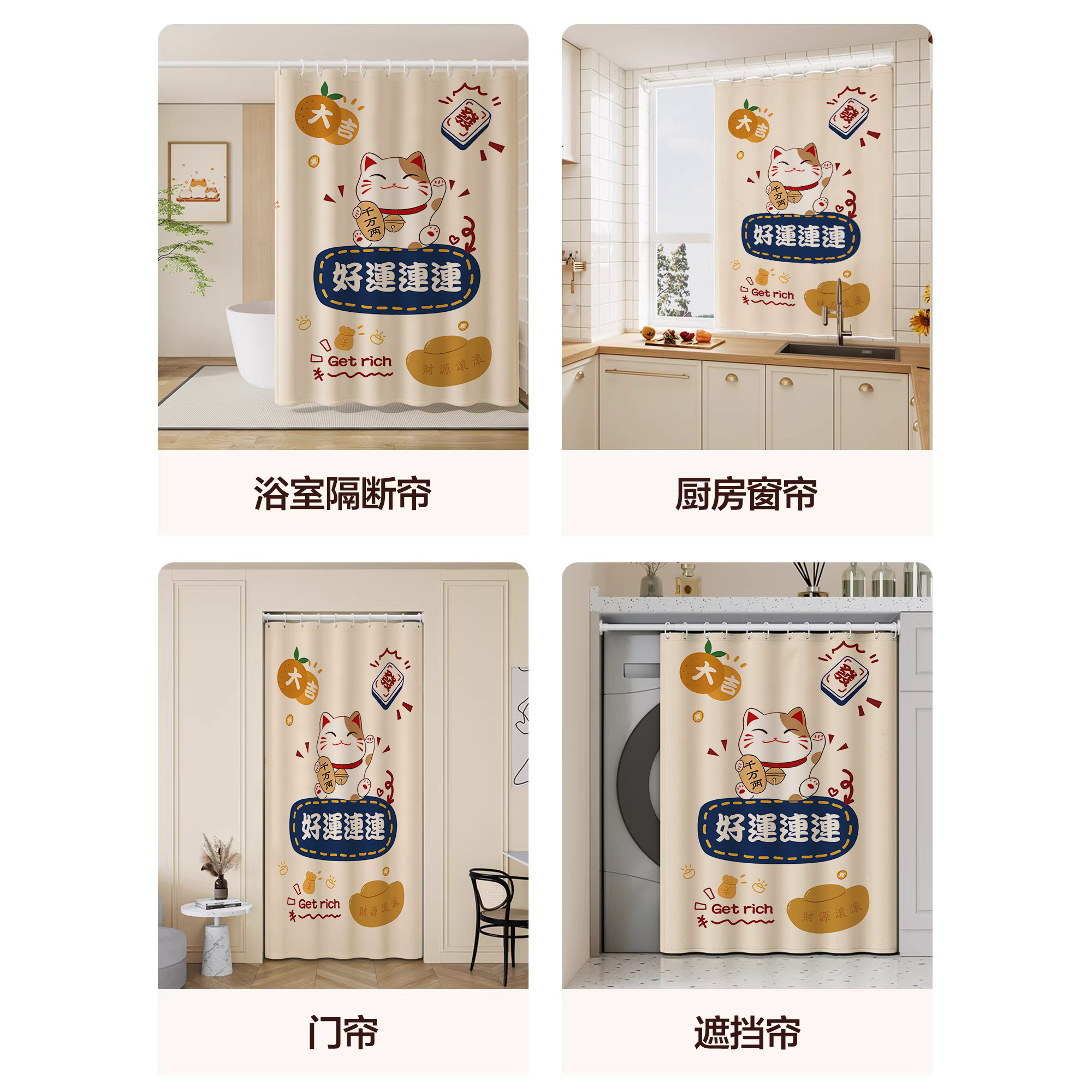 卡通浴室卫生间窗帘免打孔厕所小窗户专用遮挡布拉帘子防水防走光