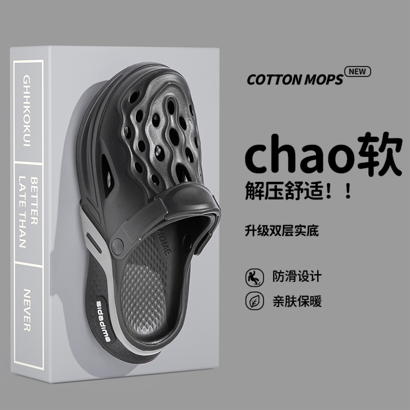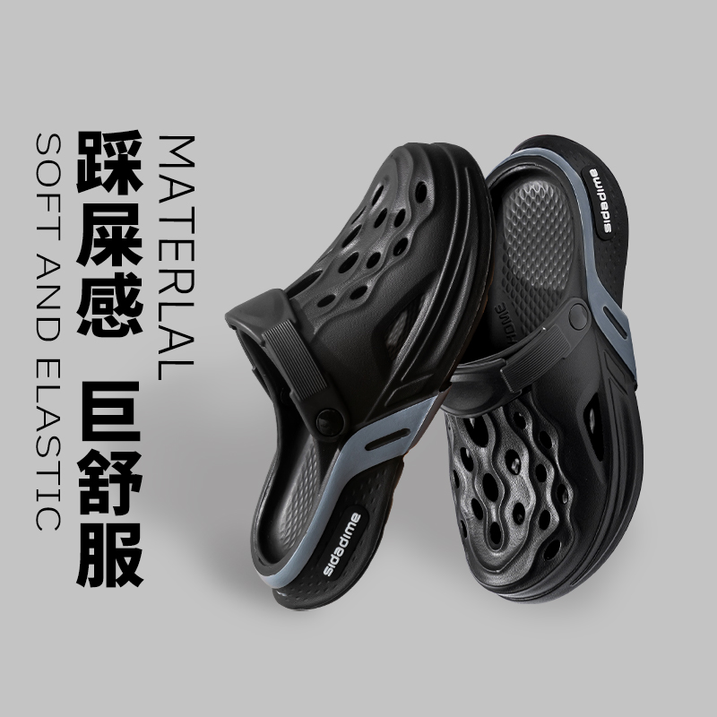 男2025夏季 洞洞鞋 沙滩户外涉水凉鞋 男士 防滑厚底踩屎感拖鞋 溯溪鞋