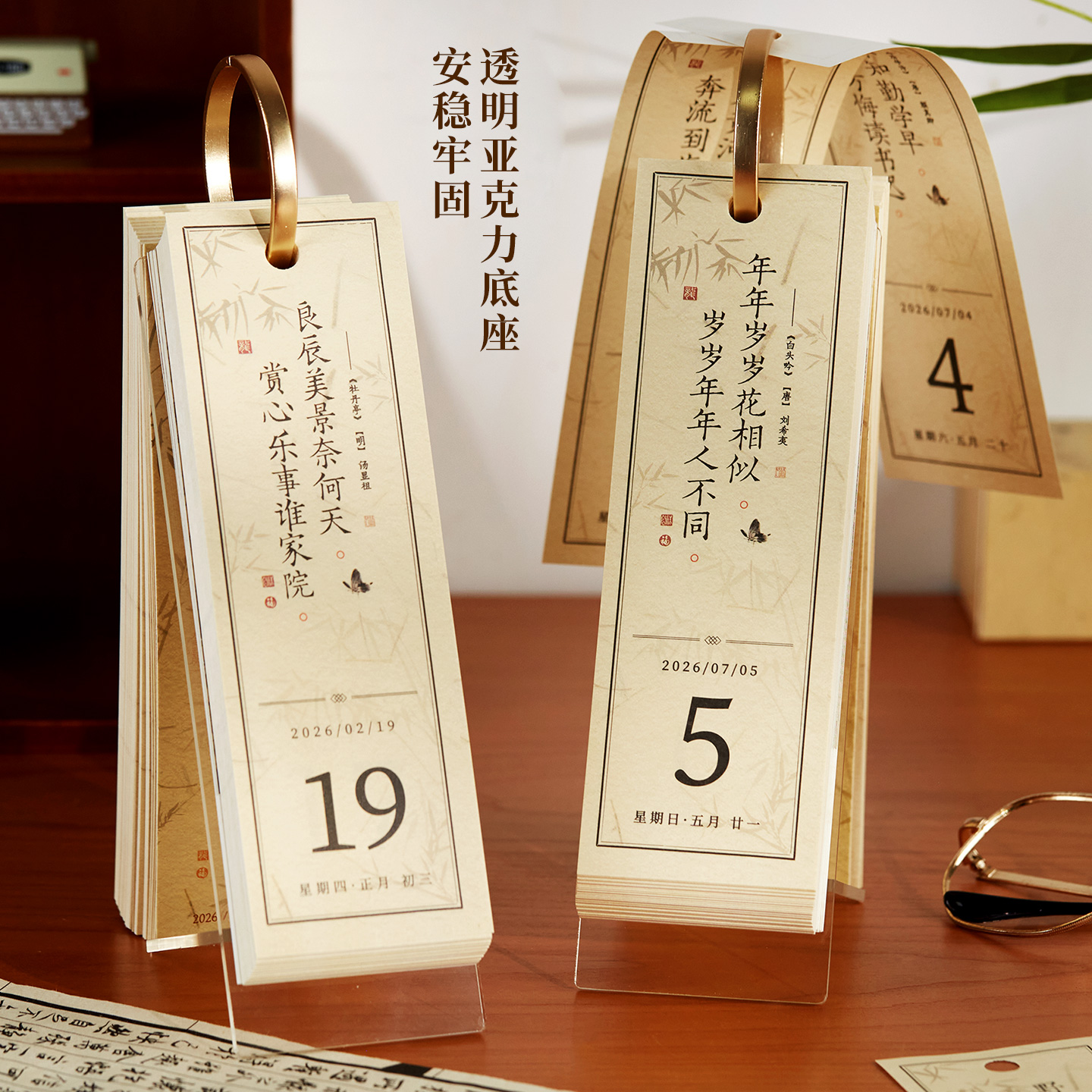 2026年复古中国风诗歌日历一日一页文艺简约古诗词台历定制365天倒计时创意打卡办公室桌面摆件可撕新年礼物