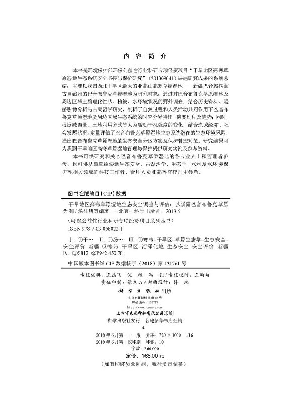 干旱地区高寒草原湿地生态安全调查与评估——以新疆巴音布鲁克草原为例