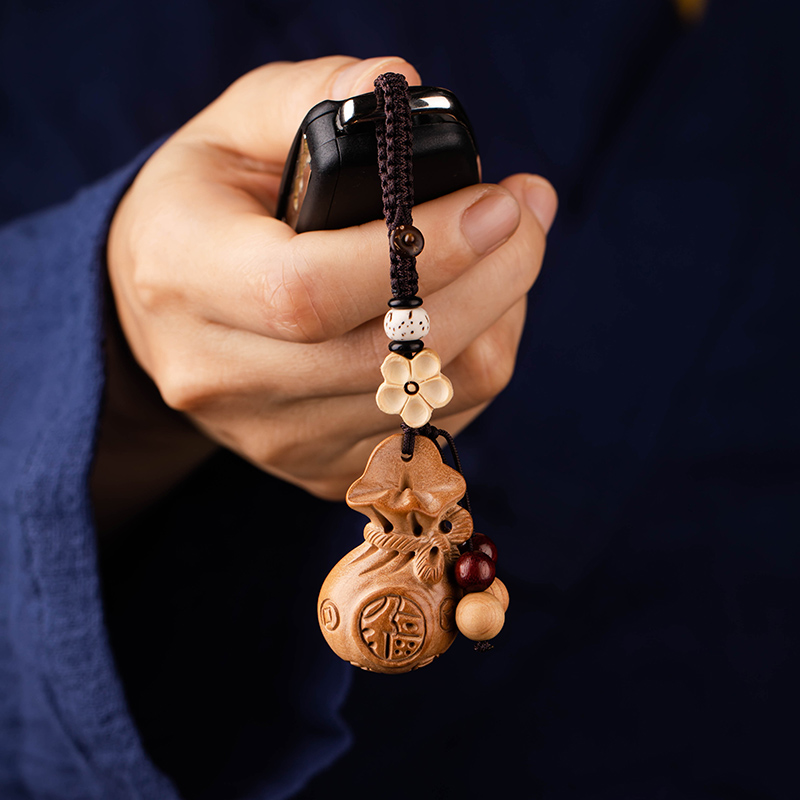 天然真桃木福袋钱袋钥匙扣男女汽车钥匙挂件纳福平安创意挂饰绳