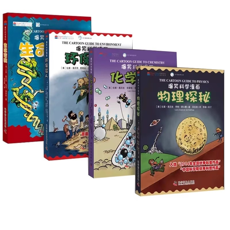 中学生 中英双语版 正版 爆笑科学漫画全4册青少年儿童科普读物物理化学生物漫画书籍课外阅读书籍物理探秘化学妙想环保超人生命密码