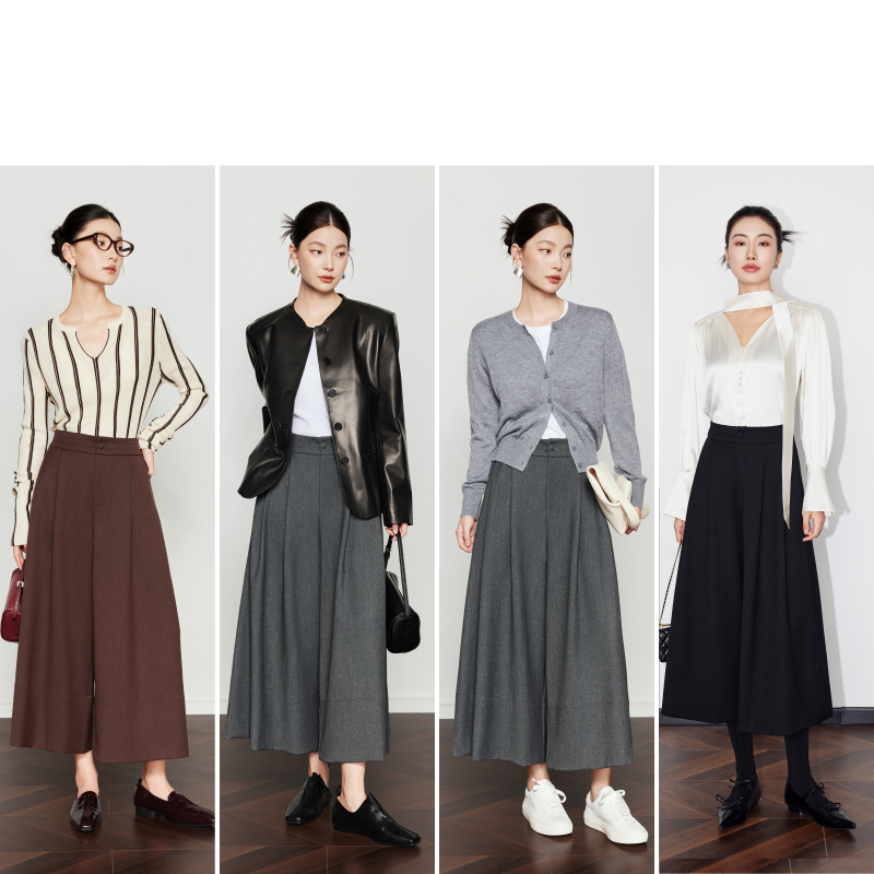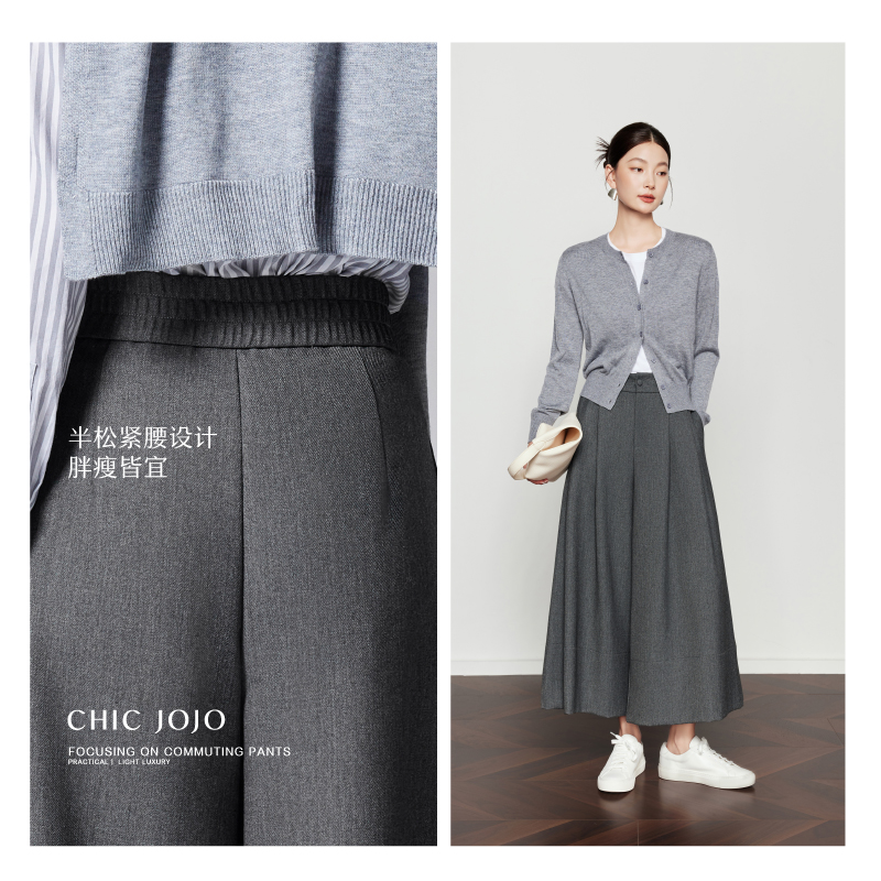黑色裤 CHICJOJO裙裤 高腰八分休闲裤 春夏新款 裙 女灰色阔腿裤