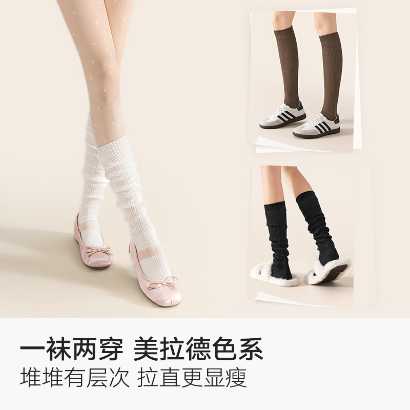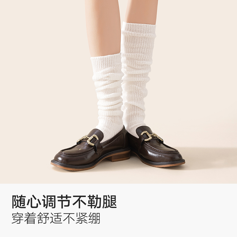 长袜 白色搭配拖鞋 无骨袜子女春秋款 中筒袜纯棉防臭堆堆月子袜夏季