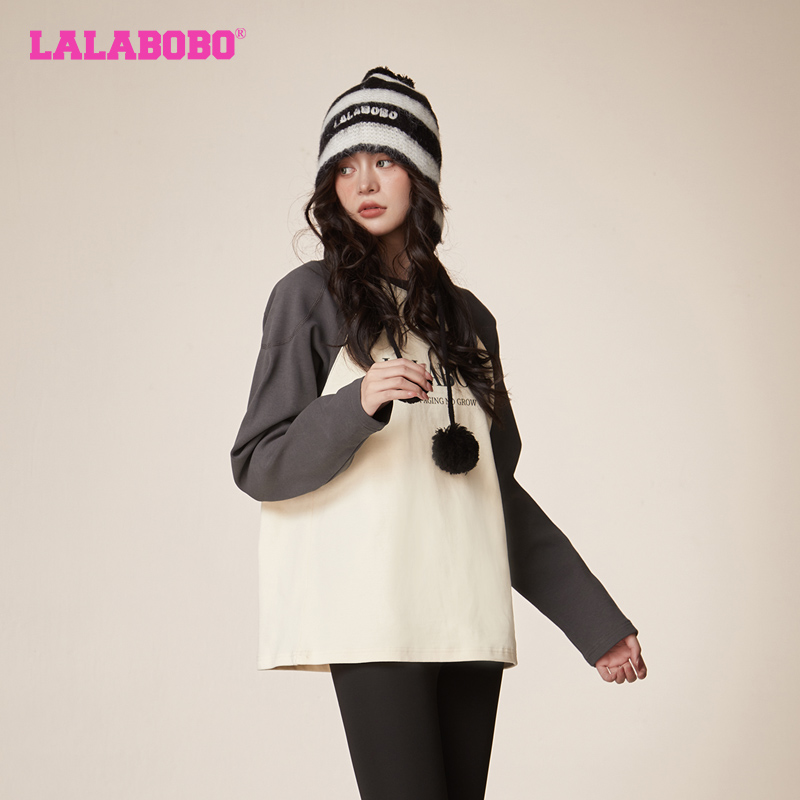 T恤女士LBCD LALABOBO2023冬季 长袖 潮流休闲字母插肩袖 WSDT24 新款