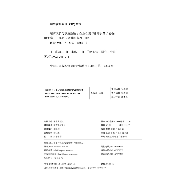 事后激励 9787519783693 超前成长与事后激励 社 法律出版 风险预防 企业合规企业文化 孙保山 企业合规与律师服务 2023新书 正版