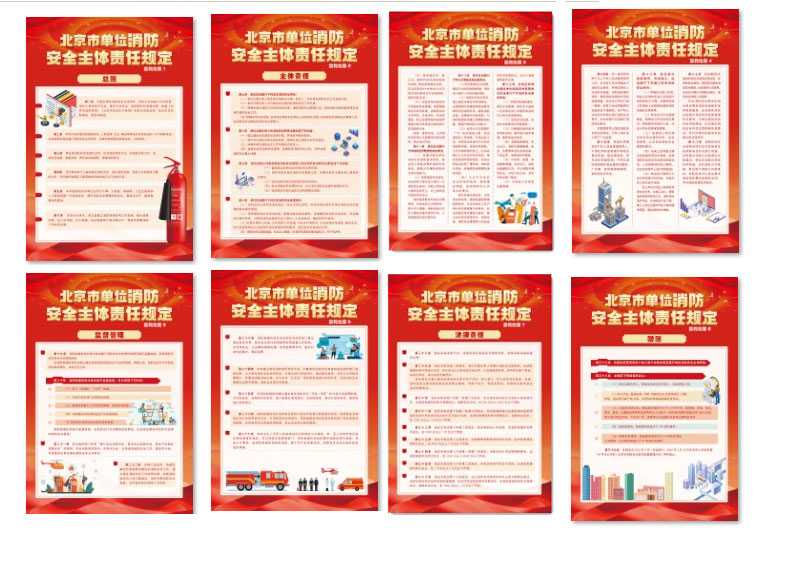 套 宣教挂图PP纸喷绘8张 消防月主题关注消防人人有责宣传挂图海报招贴画 北京市单位消防安全主体责任规定 包发票JXP01