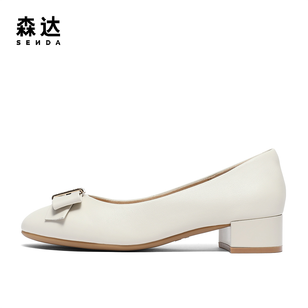 单鞋 羊皮浅口法式 千百度粗高跟鞋 异形跟职业通勤大码 静音系列