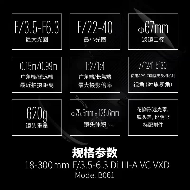 300mm 腾龙 C画幅防抖镜头18 索尼E卡口APS B061X 18300富士X卡口