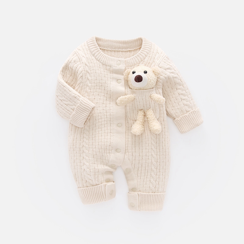 婴儿衣服秋装 毛线哈衣 连体衣新生男女宝宝毛衣秋冬洋气满月针织衫